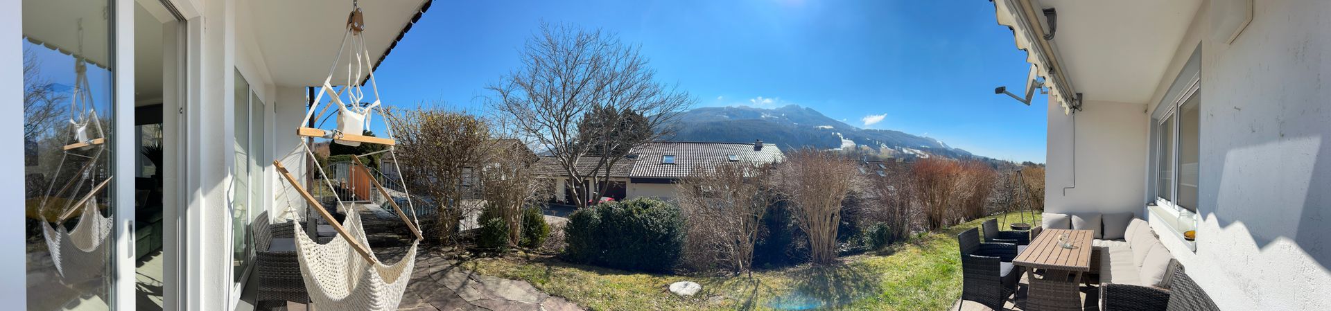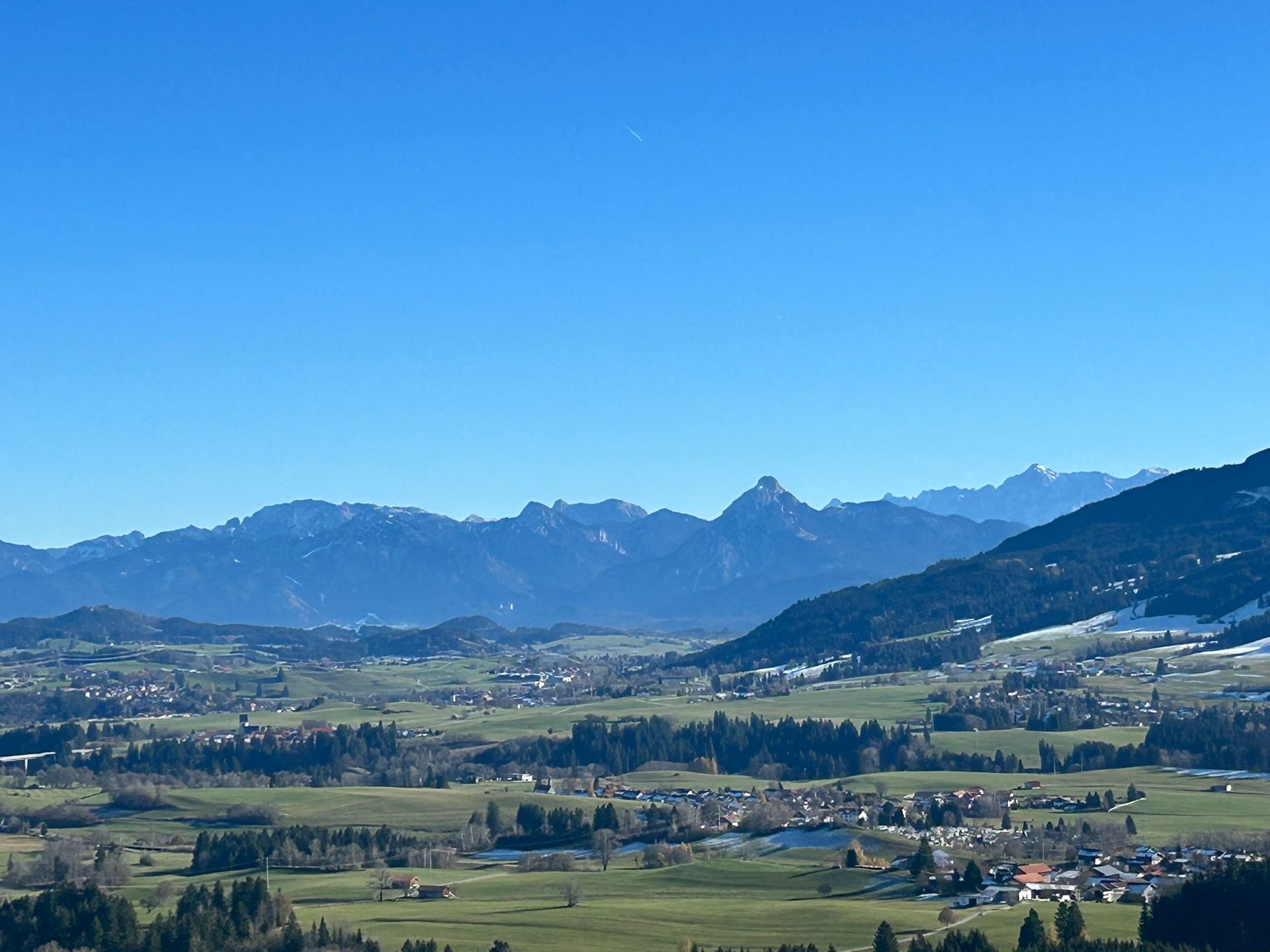 Wir haben eine Ferienwohnung am Edelweißweg in Nesselwang, die einen Rundumblick auf die Alpen und das Skigebiet bietet – mit einer atemberaubenden Aussicht.